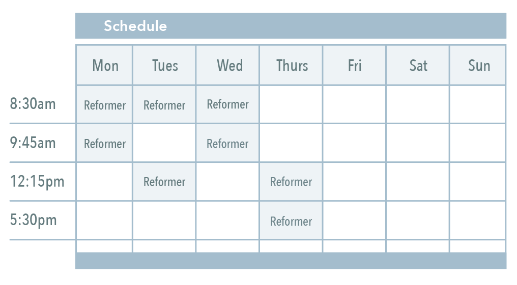 Sign up for reformer classes and to receive a mat video through Zoe or online.